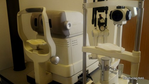 Az optikában van egy külön helyiség, amiben olyan gépek vannak, amit én már ismerek, mert láttam ilyet az OPTIMUM  szemklinikán.