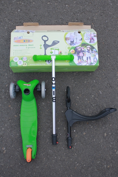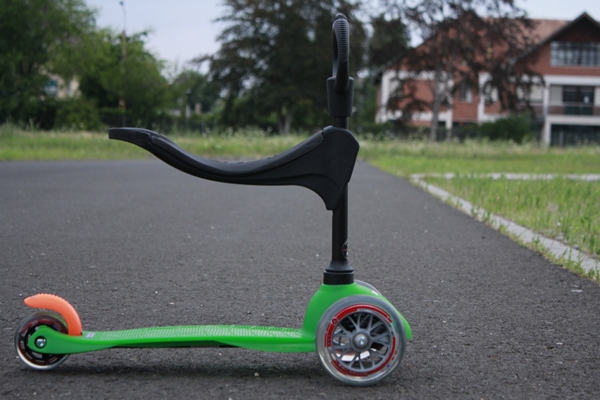 Ezúttal a Micro Mini-t volt szerencsénk kipróbálni. Az egytől öt éves korig használható szuper járgányra a legfiatalabb stábtagunkat, a 20 hónapos Krisztiánt ültettük rá. Ez a svájci mintára készült innováció három az egyben: áll egy háromkerekű talpazatból, egy kétéves korig használható kör markolatú kormányból, amire egy ülést is fel tudunk szerelni, és annak magasságát két féle beállítási móddal változtathatjuk, valamint egy ún. „T” kormányból, amit 2-5 éves korú gyermekek használhatnak. Igen, az előbb olvasottakból jól következtetnek, egy olyan rollerről van szó, amit 1-5 éves korig, azaz 5 éven keresztül használhat gyermekünk.