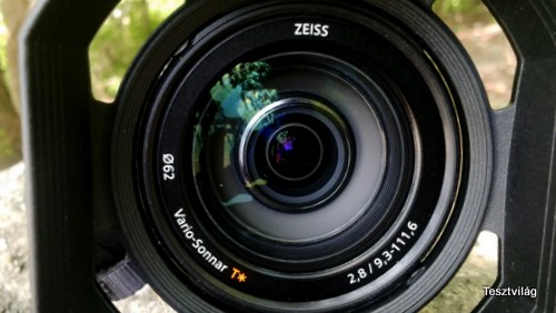 A nyári szikrázó napsütésben fontos a lencsénk védelme az oldalirányú napsugaraktól a minél jobb kép érdekében. Ezért nagyon jó, hogy van az objektívre könnyen fölhelyezhető „napellenző”.