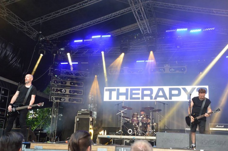 Nos, ők annak idején a Nirvana, Pearl Jam szekcióval egyidejűleg jöttek az életembe, és bár fennmaradtak, de mégsem lettek olyan híresek. Hiszem, hogy az első albumok az együtteseknél azért másabbak, jobbak vagy legalábbis őszintébbek, mert azok ösztönből, érzésekből jönnek. A szövegeket még egy-egy tankönyv szélre írják fel, a zene négy fal közt, akár a szülői garázsban születnek. A dalok pedig igazi életérzéseket, megélt dolgokat adnak át, közvetítenek azoknak, akik épp ugyanazt élik át, így aztán szépen betalál. Hmm. Láttam már őket réges-régen Szigeten és jók voltak. Aztán jöttek vagy fél éve Budapestre, most meg szinte házhoz jönnek. Szóval vártam és készültem. Figyeltem az embereket, próbáltam kiszűrni, kik jöhetnek miattuk, de csak 2-3 arcot leltem a tömegben. Sebaj, legalább elférünk. És akkor egyszer csak felcsendült az Isolation, ami így is jó, de mégis egy igazi Joy Division (akiket még kevesebben ismernek) és az ütemmel éreztem, hogy a világ bezárul és csak ők és mi vagyunk ott páran. Egyszerűen, lelkesen, ők feketében, egy szóval a kivetítőn, mert ez nem mást, mint Therapy? a szívnek, a léleknek, a múltnak, a jelennek és a láthatatlan jövőnek. És igen ők is tudják, hogy a Nurse és a Troublegum album, amit szeretnek az emberek, és persze van másik 10 album is, és azon is vannak jó dalok, de az elsőket nem haladja meg.