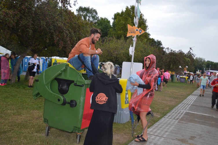 Tovább álltunk. Így a mínusz első napon még sok árus nem volt nyitva. Jut eszembe, mi ez a mínusz egy és nulladik napi szokás? Mikor alakult ez ki? Tuti jó marketingfogás, de ettől függetlenül a Szigetre már kedden beköltözhetsz és szerdán kezdődik és kedden végződik. Hívhatjuk, számolhatjuk bárhogy, de program szempontjából ez 7, azaz hét napot, vagyis egy hetet jelent… hiszen innen indult a Kell egy hét együttlét szlogen!!! Közben pedig Szigetünk apukája is megjelent, és igen, most is megismertem Müller Péter-Sziámit, mert aki számít, azt megjegyzem magamnak. Sétálva betértünk Humbákfalvára, ahol szintén szembesültünk, hogy célszerű a fesztiválkártya, mert a leolvasó nem igazán kedveli és olvassa a paypass alkalmas bankkártyát. De én már tudom, hogy másnap már pörög ezerrel a rendszer így megnyugtattam őket, hogy láttam én már ilyet is. És mi ismét tovább mentünk, közben az eső abbahagyta, a szél nem. Biztos a ruháinkat szerette volna megszárítani: nem sikerült. És betértünk az Art zónába, mert igen, itt mindenki kifejezheti magát vagy azt, amit magában tart. Az egyik kiállító próbált is rávenni minket az alkotásra, próbáltak velünk kommunikálni, mert örültek, hogy magyarok vagyunk. Én viszont szó szerint a levegőben éreztem a zöld alkotásaik illatát (ha érted, mert ugye érted) így hagytam őket tovább alkotni. Amúgy is már a Before I die falon kifejeztem mit, illetve kit is szeretnék elérni halálom előtt, mert ezt minden évben le kell írnom, hogy lássam a célom. Ha felszárad a Sziget, akkor ezen a részen órákig, vagy napokig el tudsz feküdni, mert egy fesztiválhoz a chill out is hozzátartozik, mert freedom, mert földközeli, és mert ki kell szakadni a valóságból… de a kiszakadás vizes fűben, sárban közel a 40-hez nem megy már. Sétáltunk tovább, és megtaláltuk a habparty helyszínét, igaz a mínusz első napra hab még nem járt, bár ki is akarna ebben a melegben habos vizes lenni. Persze betértünk egy gyors fodrászatra, hogy legyen stílusunk, mert a megjelenés fontos, így ők minden nap délután 3-tól este 9-ig fodrászkodnak, és sminkelnek nemre való tekintet nélkül.