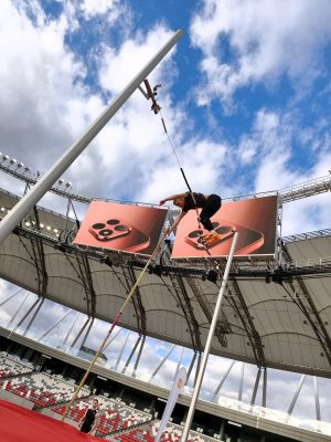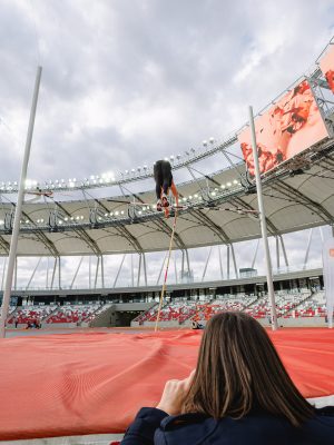 A nap különleges élményét az adta, hogy hazai élsportolókkal dolgozhattunk együtt. Olyan nevekkel, mint Gulyás Michelle, olimpiai bajnok öttusázó, Kozák Luca, kétszeres olimpikon és Európa-bajnoki ezüstérmes gátfutó, Tóth Anna, kétszeres junior világbajnoki bronzérmes és U23 EB-ezüstérmes gátfutó, Farkas Petra, olimpikon távolugró, valamint Böndör Márton, többszörös országos bajnok rúdugró. Ők nemcsak bemutatót tartottak, hanem tényleg együttműködtek velünk a fotózás során, így a mozdulatok, ugrások és futások valódi energiát sugároztak – és ez a képeken is visszaköszönt.