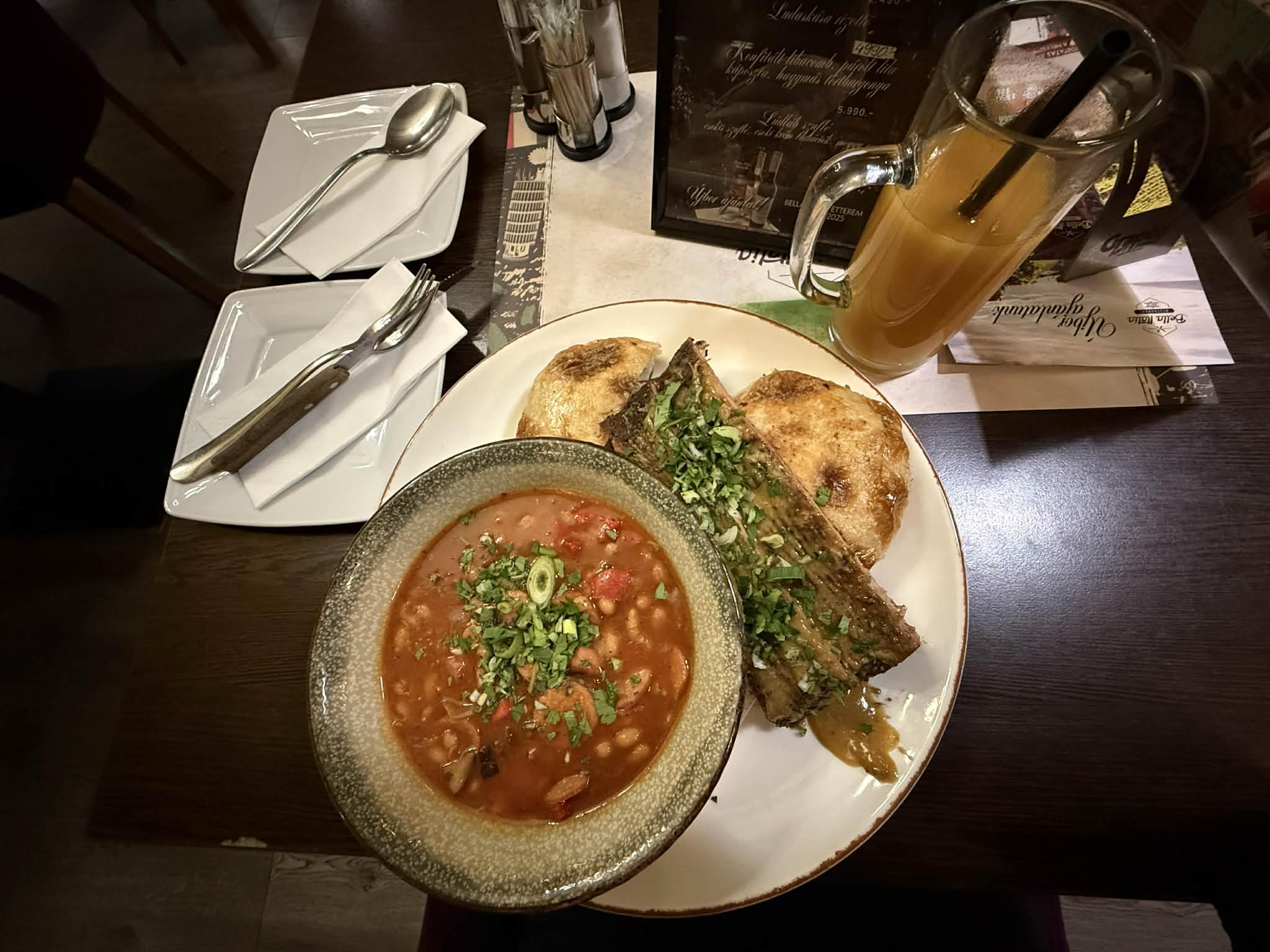 Ahogy a tányér a kezem elé került (és ahogy a képen is majd látni fogjátok) egyszerűen gyönyörű volt. A hús fényesen csillogott, a rub tökéletes színt adott neki, a sült bab pedig olyan sűrű és tartalmas volt, hogy már ránézésre tudtam: ütni fog. A lepénykenyér enyhén pirult széle, hólyagos felszíne alapján már a látvány is azt üvöltötte: „Egyél meg!”