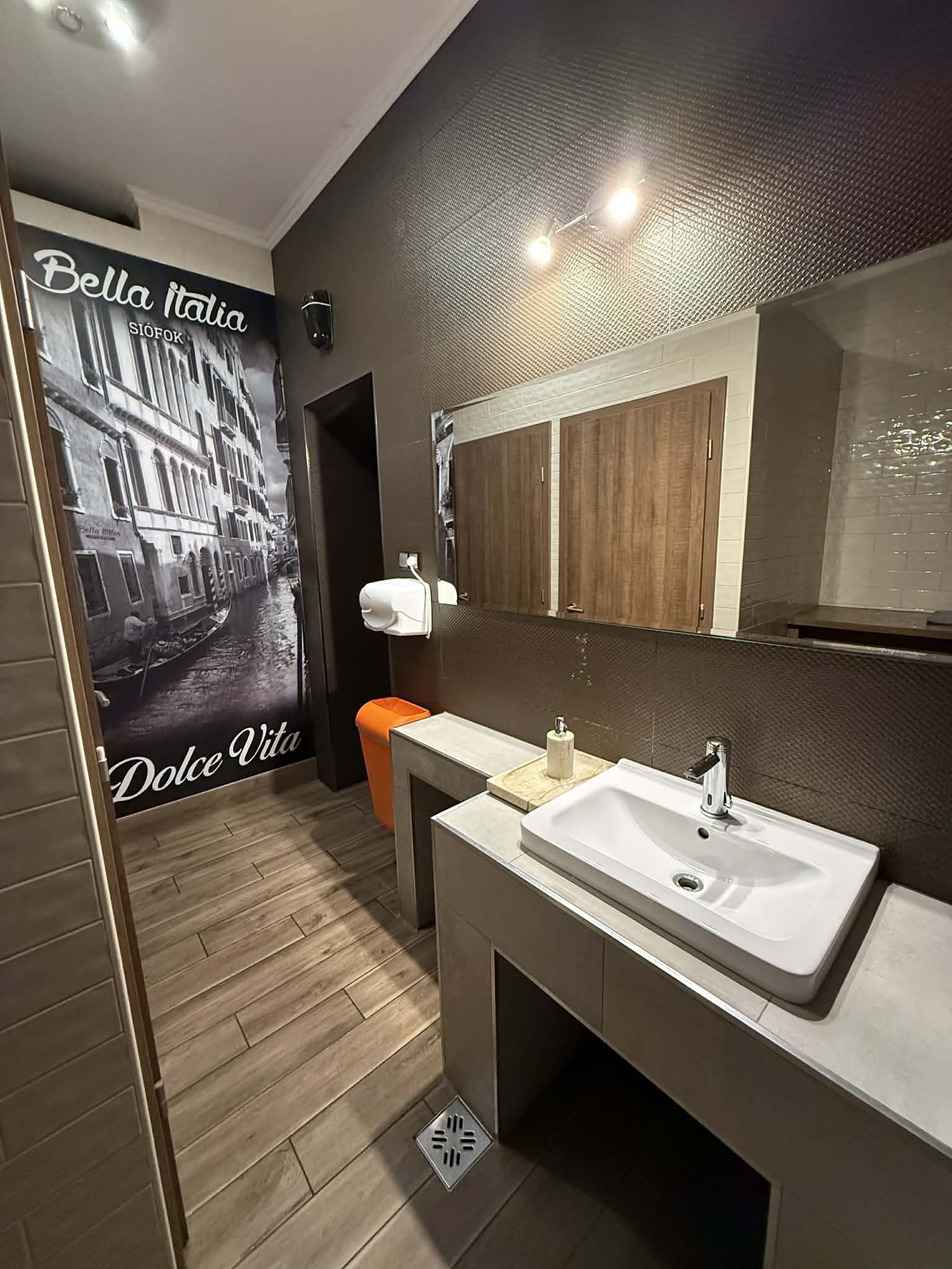 A kaja után jött a másik meglepetés. Esős idő volt egész nap, mégis olyan tisztaság fogadott, hogy akár a földről is lehetett volna enni. A kabátnak külön akasztó volt, így nem kellett a székre dobálni. A mosdó pedig… hát az külön élmény. Nemcsak tiszta volt, de kellemesen illatos is – ami manapság ritkább, mint egy jó BBQ rub.