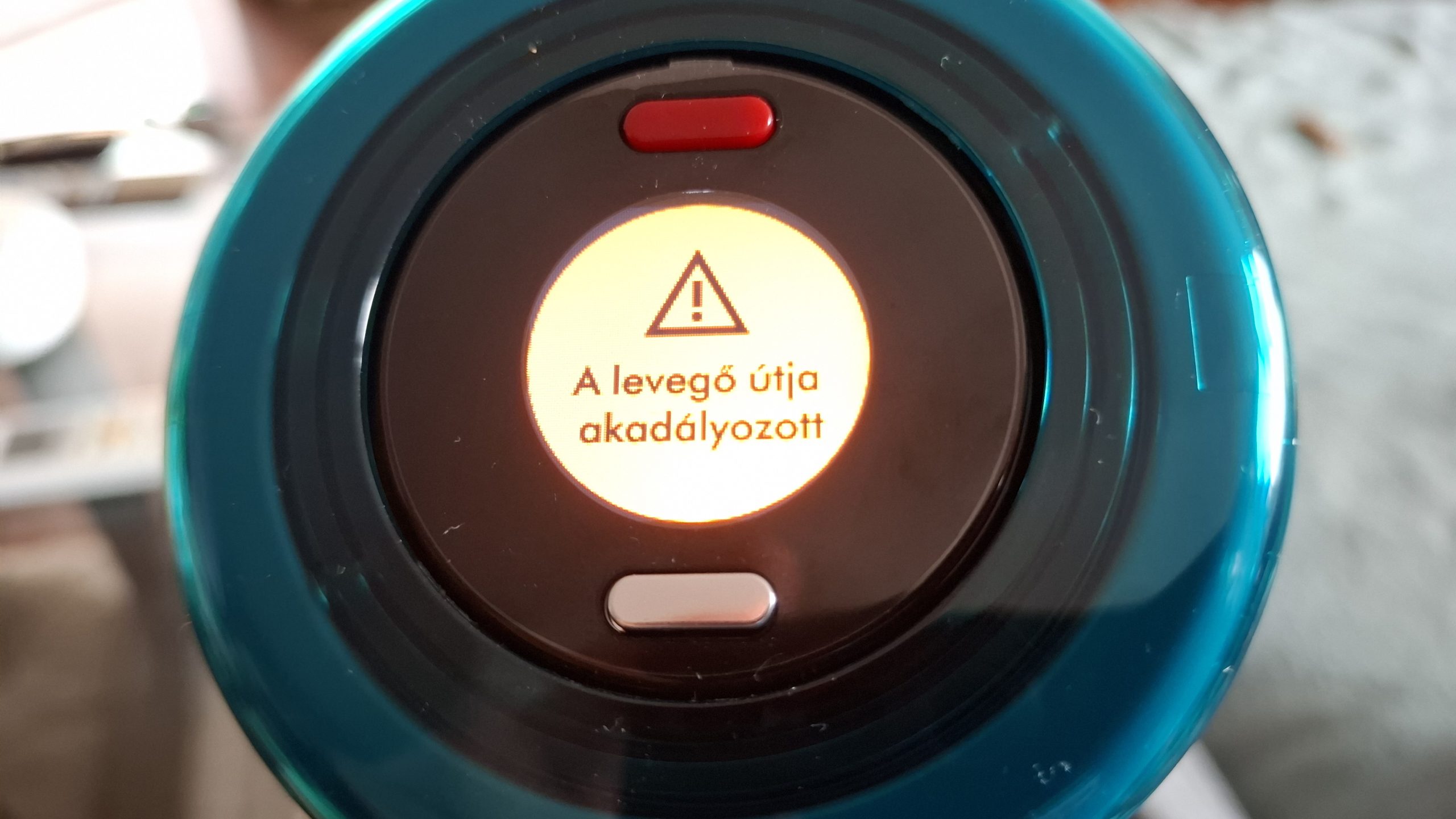 Amikor Valami hiba történik, én ezt tudatosan tettem úgy, hogy lezártam a szívócsövet, akkor azonnal érzékeli a porszívó és az információs kijelzőn ezt jelzi is és lekapcsol. Valóban okos.