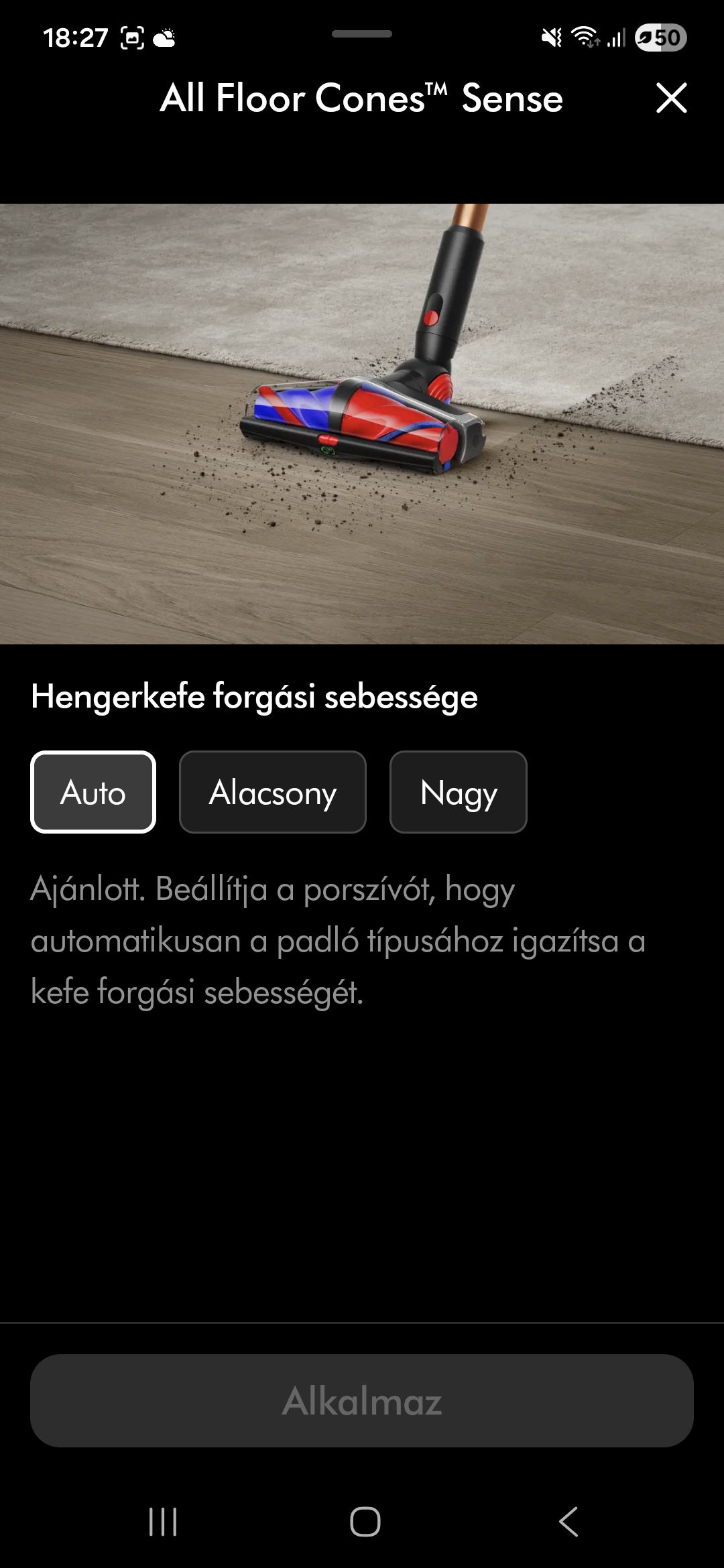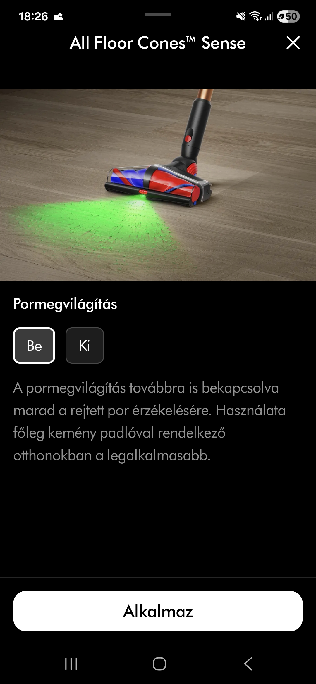 A világító fej megmutatja azt a port is, amit szabad szemmel nem látsz. Első használatnál konkrétan sokkoló, mennyi kosz van egy „tisztának hitt” padlón.