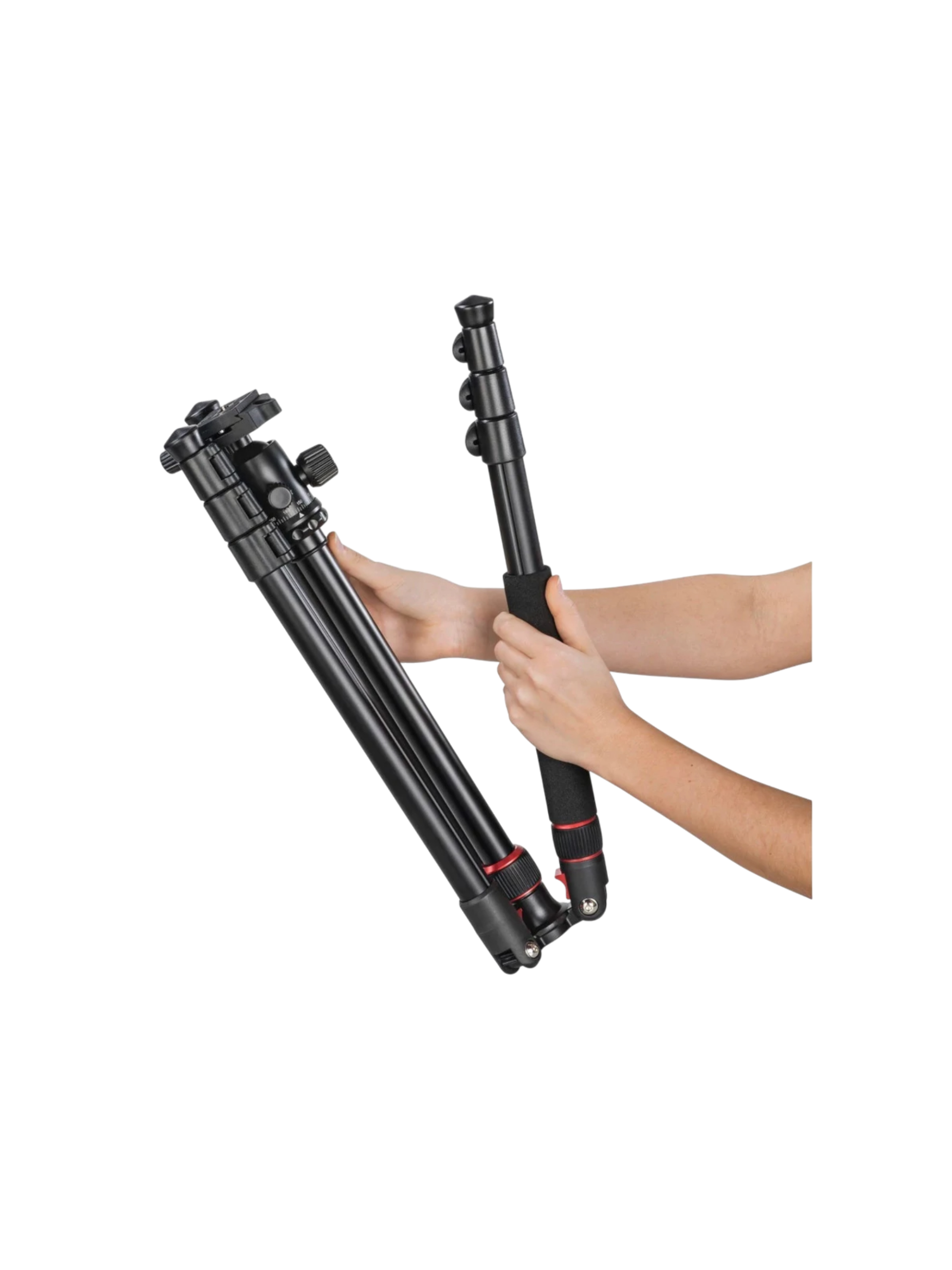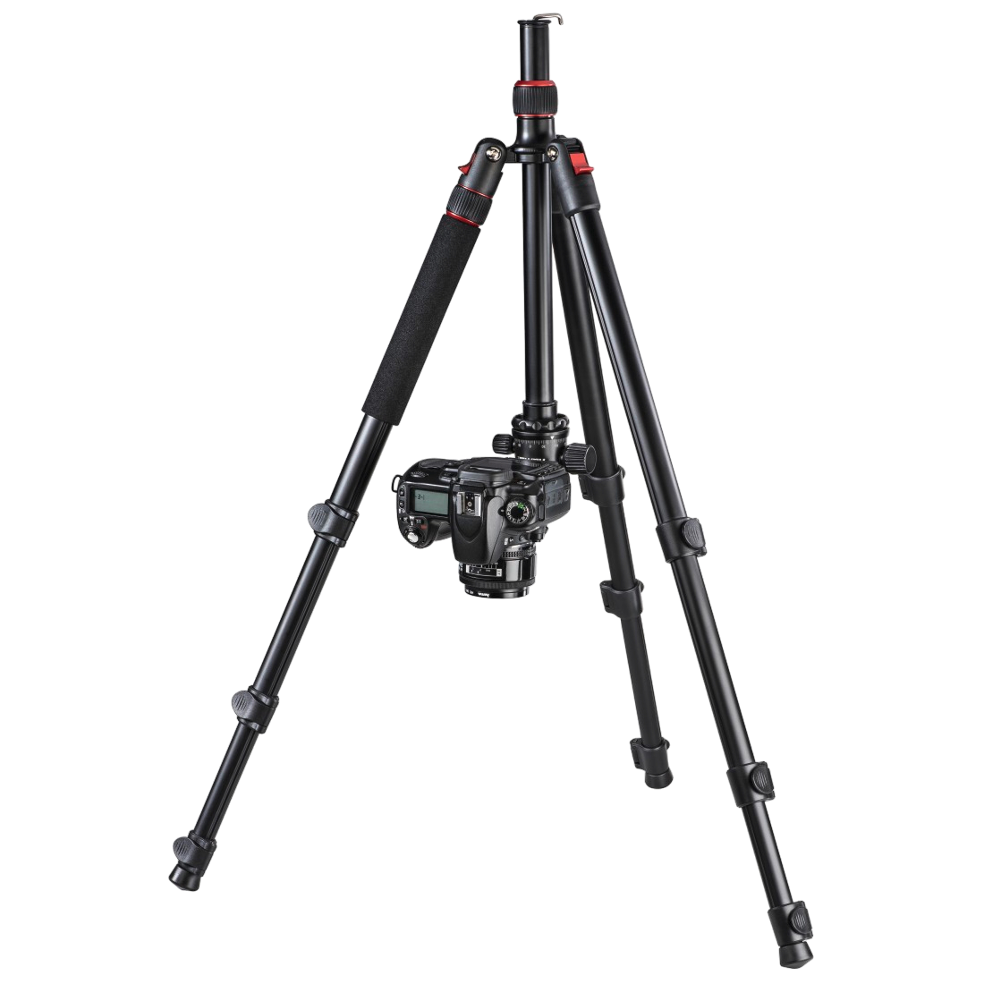 - Monopod funkció – a középoszlop eltávolítható és egy kézzel is használható mini állvánnyá alakítható úgy, hogy a tripod egyik lábát is levesszük és a kettő pont egybe csavarható