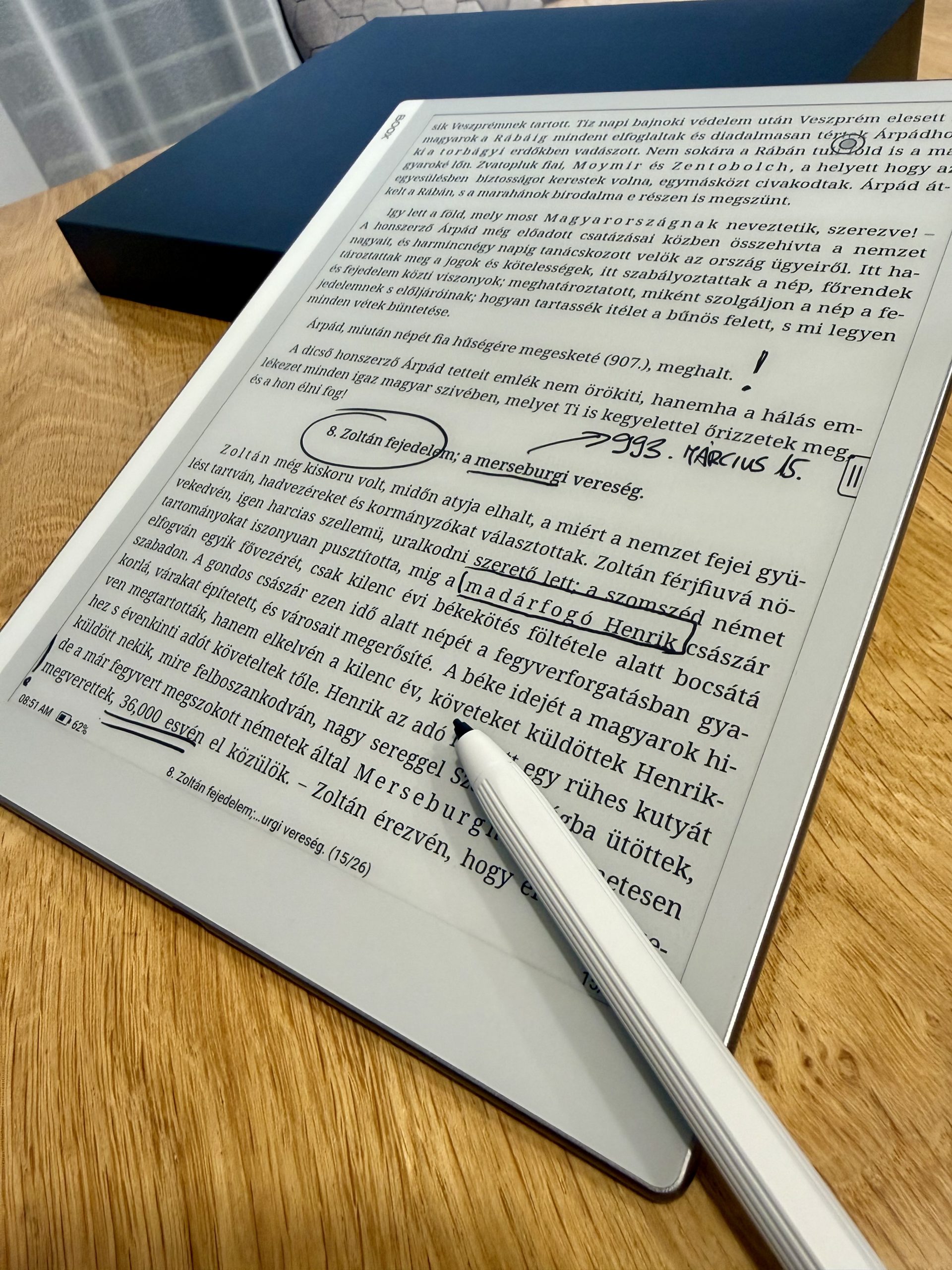 A tollal írni valóban papírszerű élmény. Jelölni, aláhúzni, megjegyzést írni könyvekben és PDF-ekben kifejezetten élvezetes. Tanuláshoz, lektoráláshoz hiánypótló.