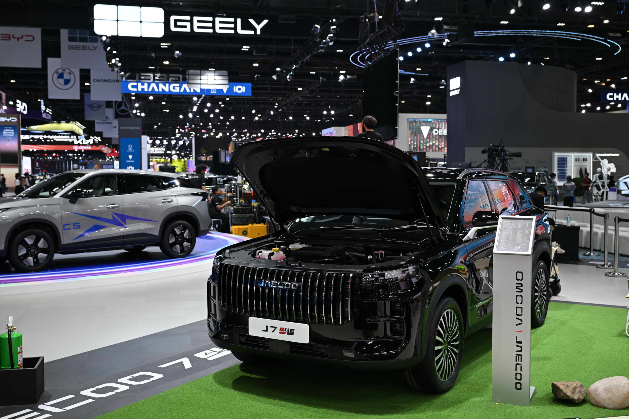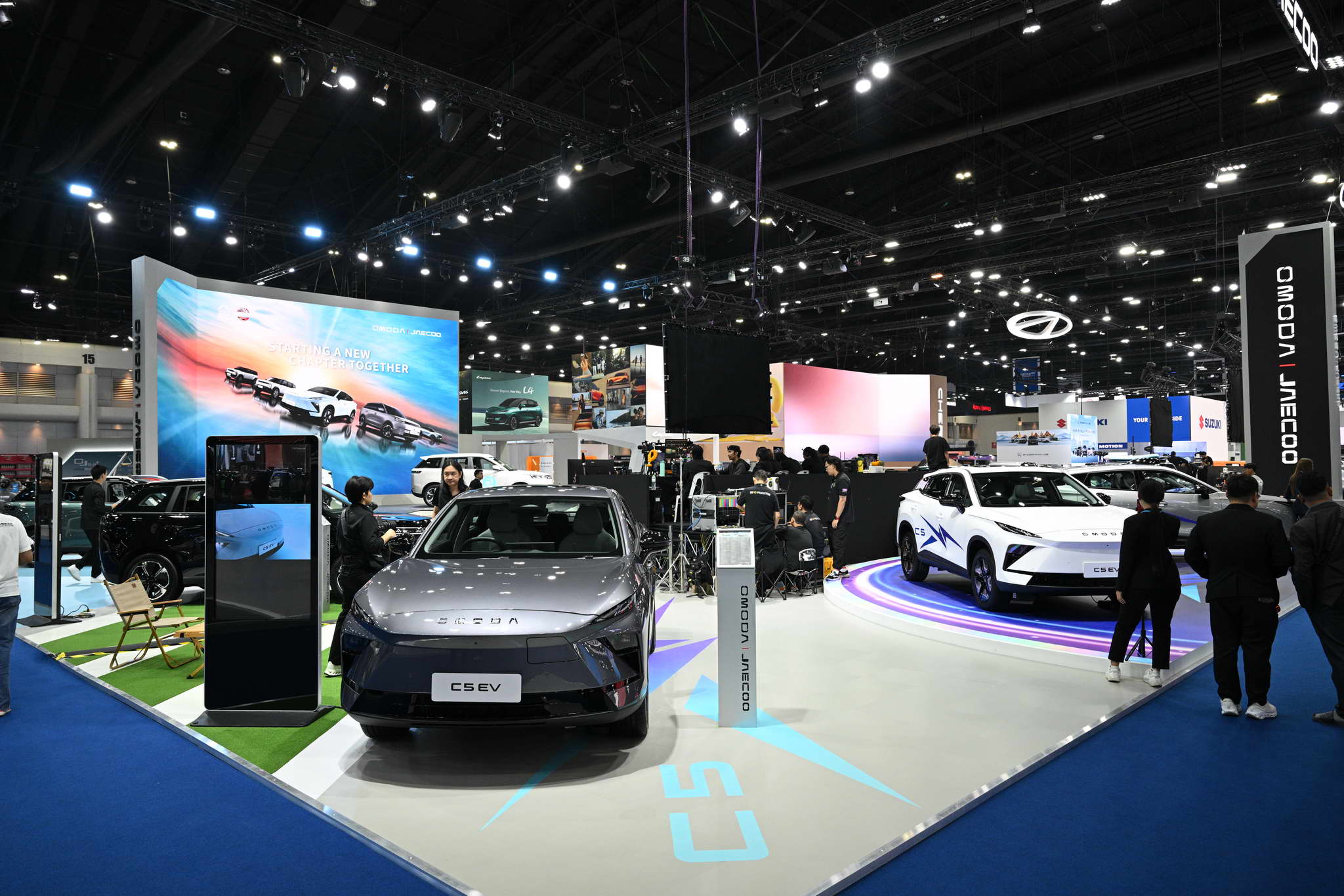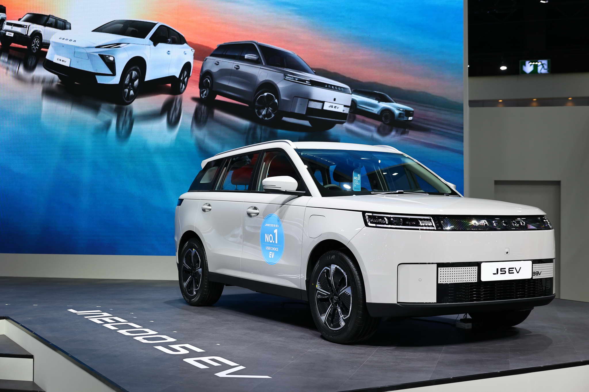 Az OMODA és a JAECOO standján kiállított járművek között megtalálható az OMODA C5 EV MAX+, a JAECOO 5 EV MAX+, a JAECOO 6 EV, a JAECOO 6T EV és a JAECOO 7 SHS.