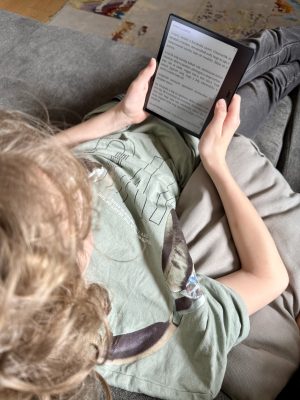 A nagyobbik fiam ezen az eszközön olvasta el a Egri csillagok-at. Előtte volt bennünk egy kis feszültség, hogy vajon a tavaszi szünet alatt mennyire fog ez gördülékenyen menni.