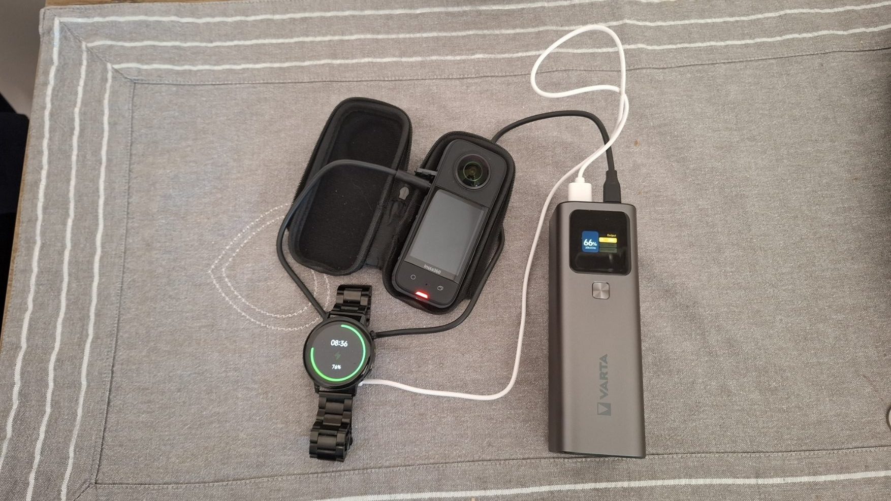 Tesztben egy USB-C-s Android telefont, egy HP OMEN prémium laptopot, iNsta 360 kamerát és okosórát töltöttem vele vegyesen.